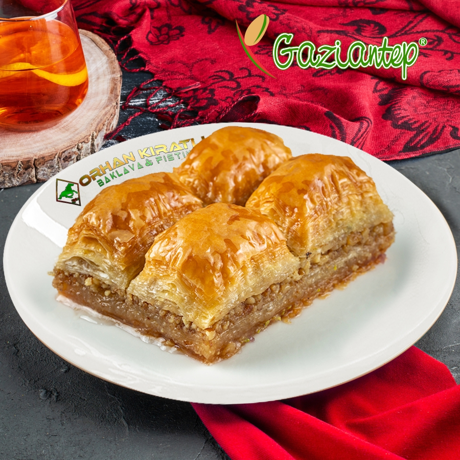 Gaziantep usulü cevizli baklava, yoğun aroması ve çıtır dokusuyla klasik baklava severlerin vazgeçilmezidir. Online baklava siparişinizi şimdi oluşturun, geleneksel lezzeti kapınıza kadar getirelim.