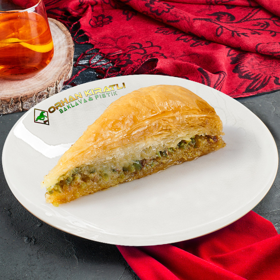Havuç dilimi baklava, büyük kesimi sayesinde hem görsel olarak dikkat çeker hem de daha yoğun bir iç dolgu sunar. Özel davetler, premium ikramlar ve kurumsal gönderimler için prestijli bir tercihtir.